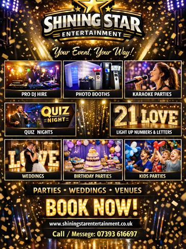 At Shining Star Entertainment, our mission is to create unforgettable moments through exceptional entertainment. We are committed to delivering high-quality, reliable, and personalised services that transform every celebration into an extraordinary experience.