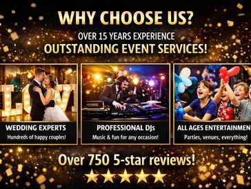Our experience isn’t just measured in years — it’s measured in happy couples, unforgettable parties, packed dancefloors, glowing reviews, and magical memories. It’s this history of excellence that continues to guide us as we deliver premium entertainment for every event, big or small.